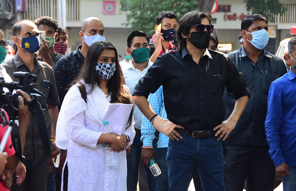 Republictv arnab goswami leaves the nm joshi marg police station after over 12 hours of interrogation.